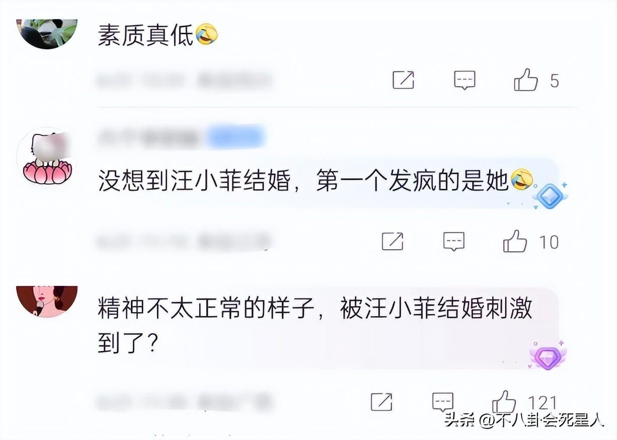 張穎穎雖然不是明星,但是作爲出名的網紅,畢竟是公衆人物,這一頓操作真是難評。評論區很多人可不慣着她,紛紛吐槽她太狂妄,素質太低,還有人質疑她精神受刺激了,估計是被汪小菲結婚整破防了。