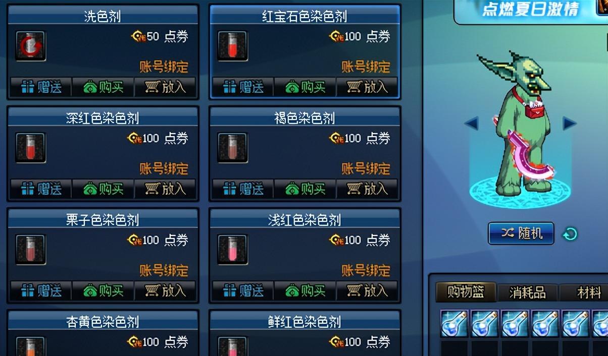 普通時裝染色100代幣券,稀有時裝染色500代幣券,洗色劑50代幣券。