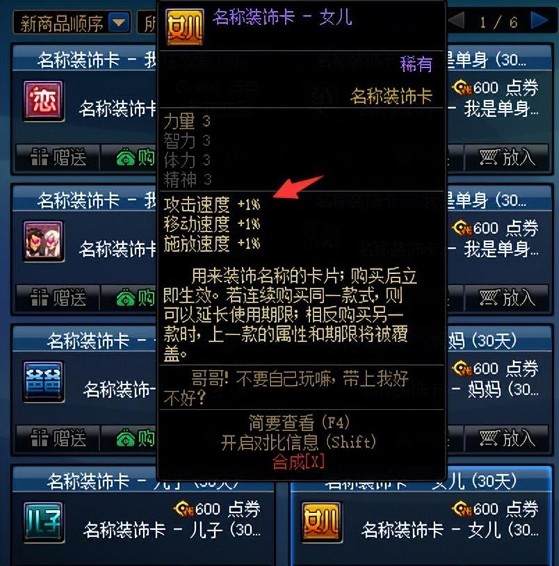 600點券30天,這個主要是可以增加1點攻速,如果你的攻速剛好差一點,那麼可以用這個彌補。