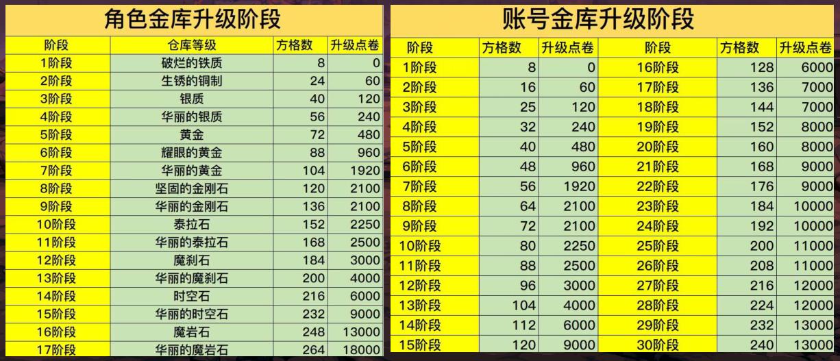 可以一直用的倉庫,怎麼也不會嫌小,等級越高、消耗代幣券也就越多,這裏有一份表格大家可以參考一下。