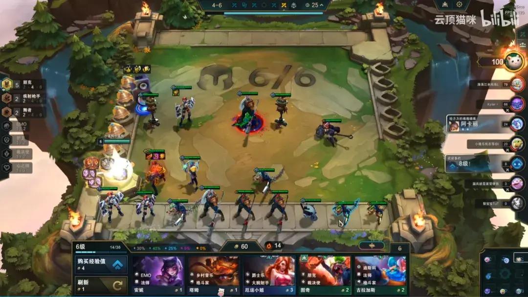 圖源:B站@雲頂貓咪 朋克羈絆會基於刷新耗費的金幣,爲玩家提供屬性加成。即使到了後期,朋克陣容面對高費牌也有取勝的可能。