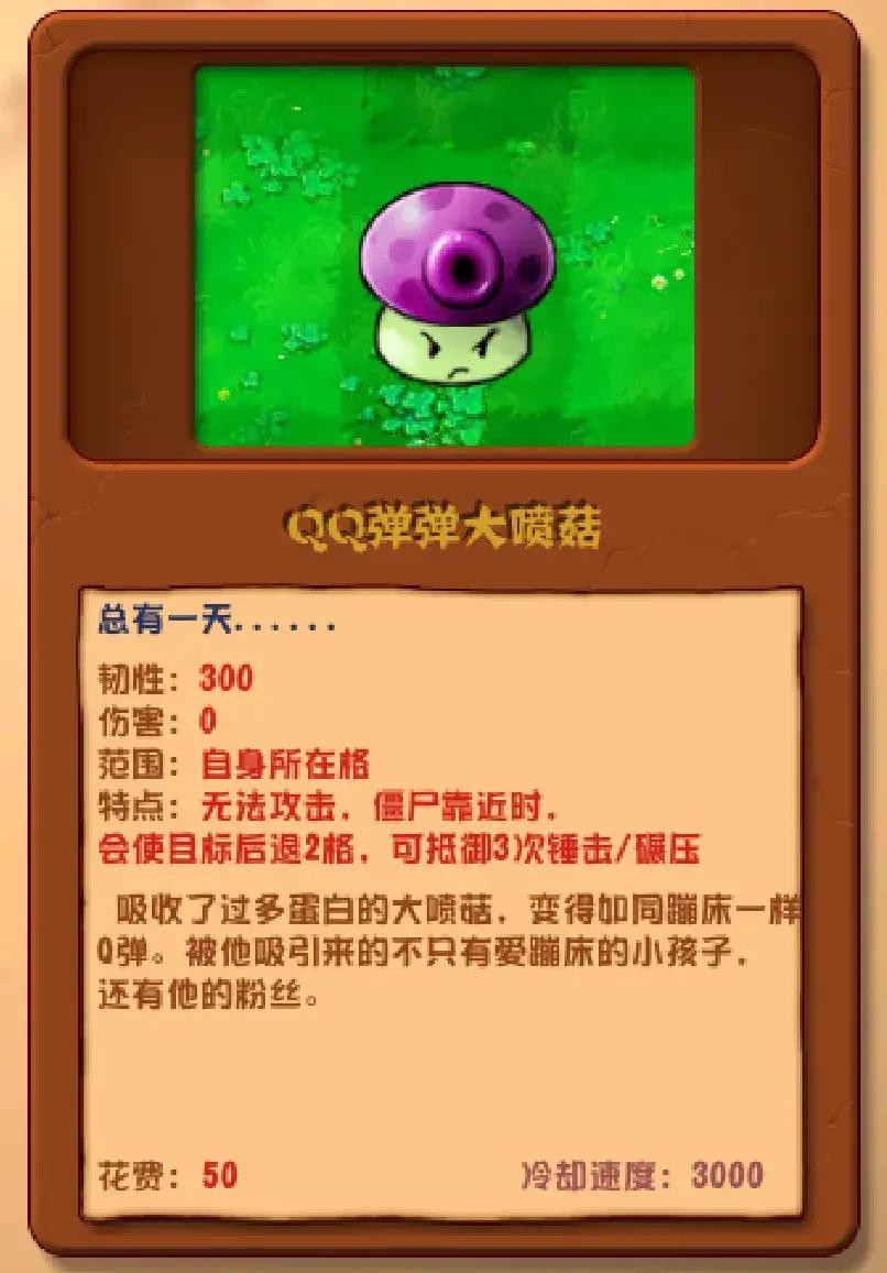 比如說他平常喜歡喫漢堡,所以就設計了一個同時射擊多種彈藥的“漢堡射手”出來。又比如“QQ彈彈大噴菇”,是對《植物大戰殭屍》社區某些小衆興趣的致敬。