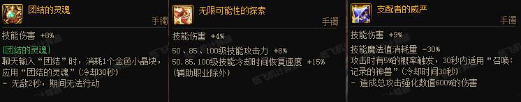 而除此之外,從團本或新地圖中,還有概率掉落另外的3件手鐲融合石,簡單看看屬性: