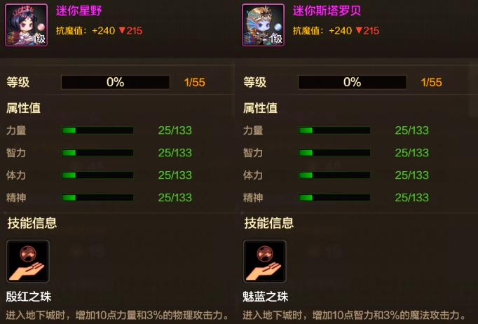 “迷你寵物”屬性和導師套寵物差不多,大號不需要,小號有活動送的雲雀也不需要;
