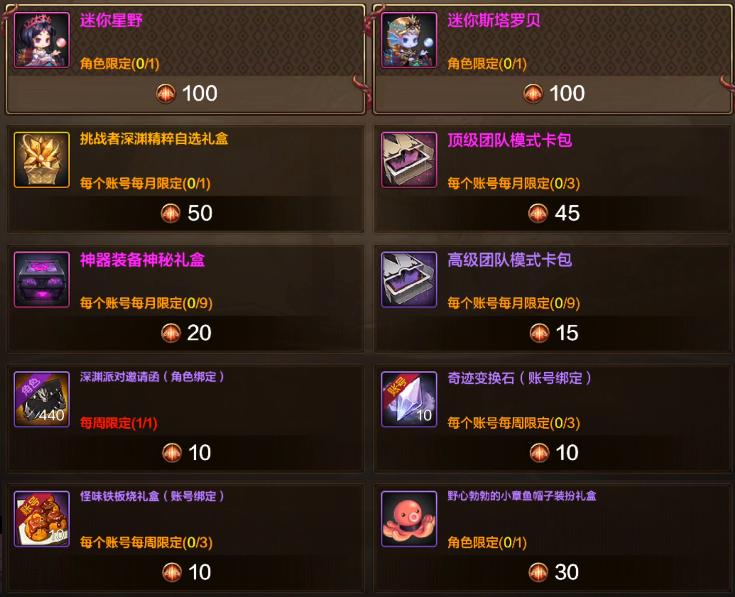 推薦兌換:頂級團隊卡包、高級團隊卡包、深淵精髓禮盒