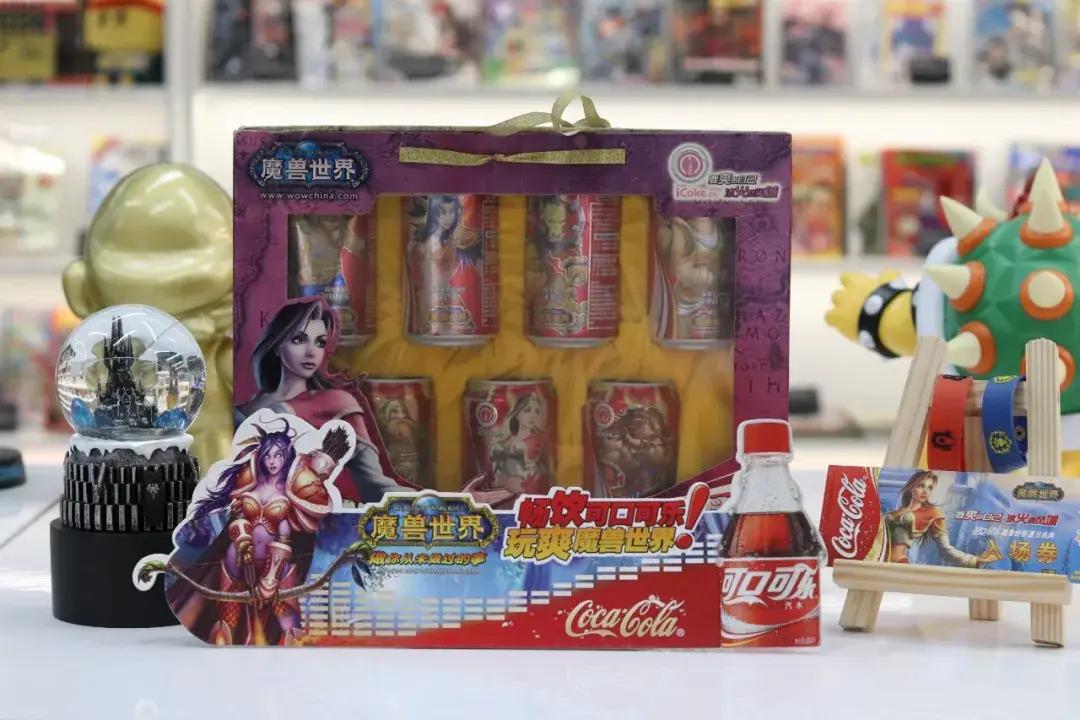 《魔獸世界》可口可樂聯動套裝。可樂罐體印刷着各式魔獸角色,這在當時是一次熱度很高的聯動。
