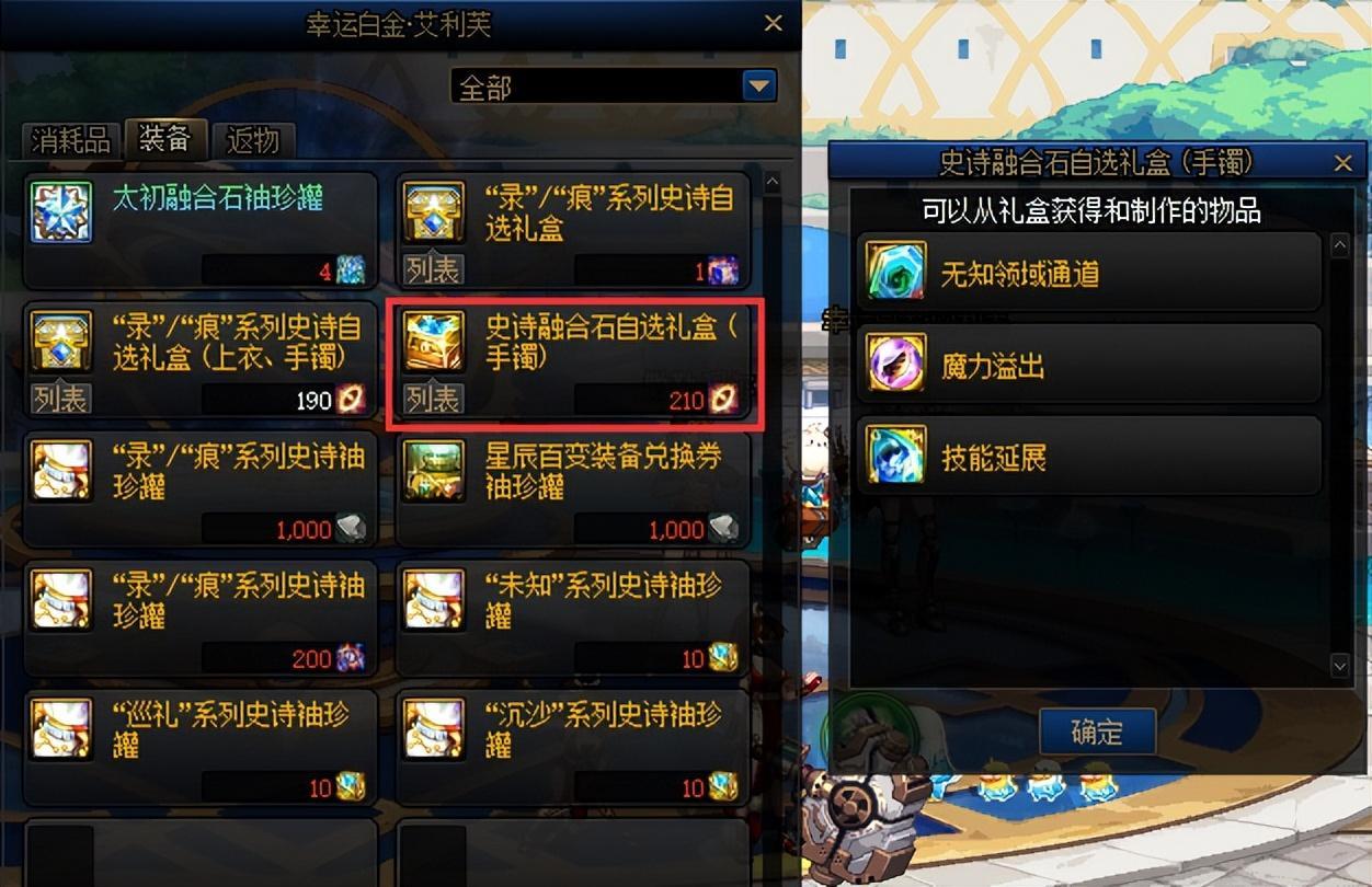 “手鐲融合石”更建議先打深淵,如果爆出來了皆大歡喜,如果沒有爆出來,那再去用210個狗眼換自選禮盒就好了。