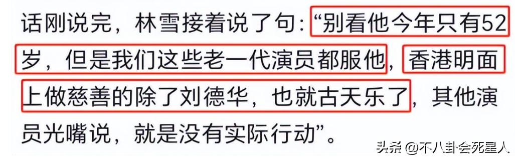 演員林雪曾經說過,港圈明面上做慈善的明星就只有劉德華和古天樂。