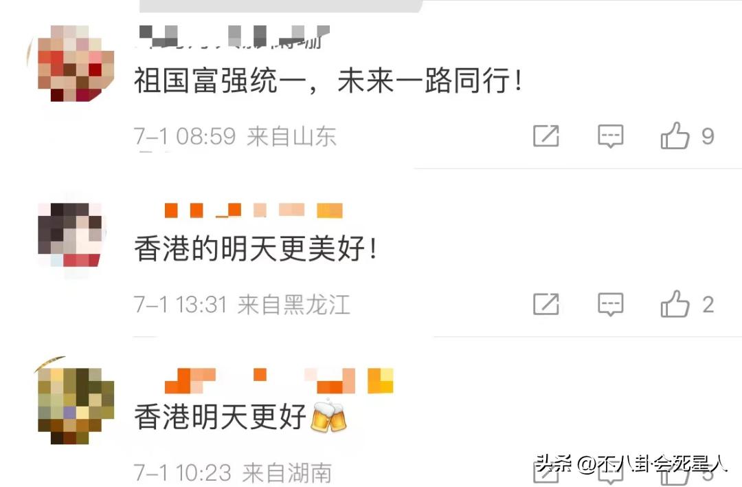 郭晶晶寫的文字雖然簡單質樸,但卻鏗鏘有力,評論區的網友們也紛紛響應郭晶晶,慶祝祖國富強統一,祝福香港的明天更加美好。