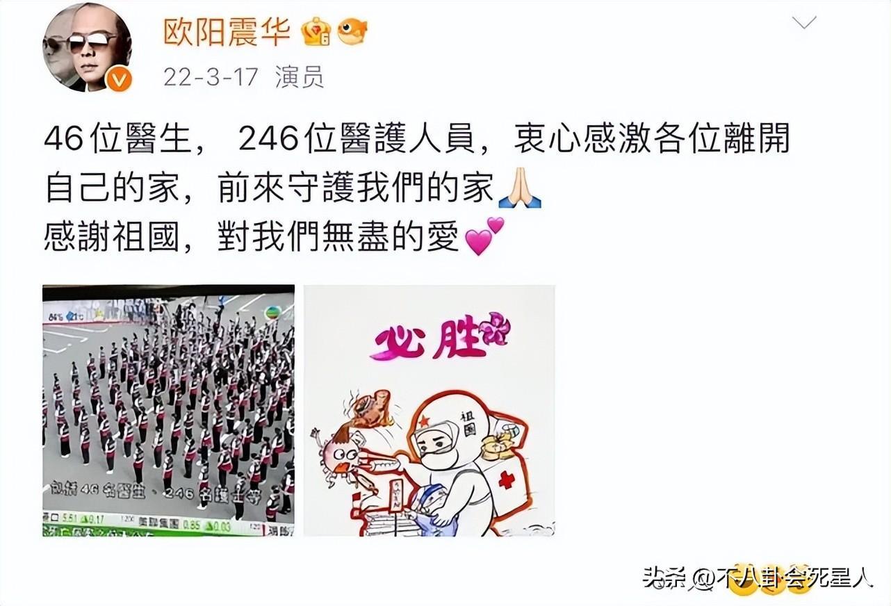 近些年歐陽震華已經步入老年,鮮少在熒幕上出現,但卻經常發佈博文,在特殊時期,他發博感謝醫護人員。