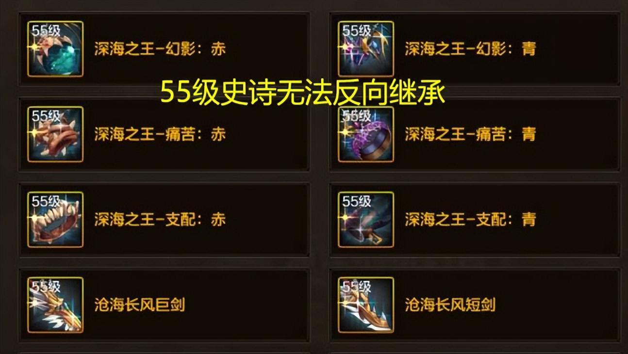 比如我們可以把50級史詩武器繼承給55級史詩武器,那麼自此之後,55級史詩武器就無法反向繼承給50級史詩武器了。