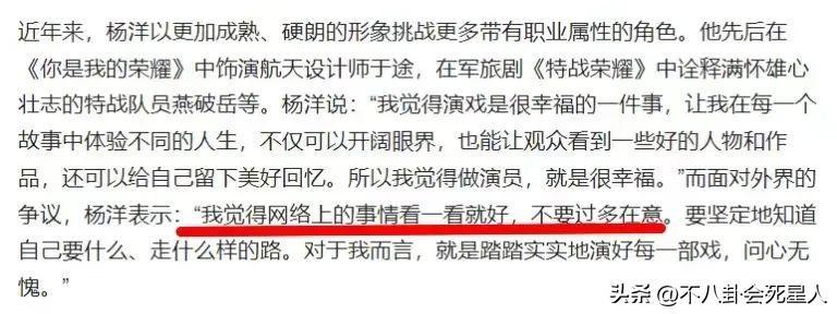 同樣沒把觀衆的話放心上的,還有楊洋,《我的人間煙火》被羣嘲,楊洋回應爭議時認爲網上的事情看一看就好,不必過多在意。