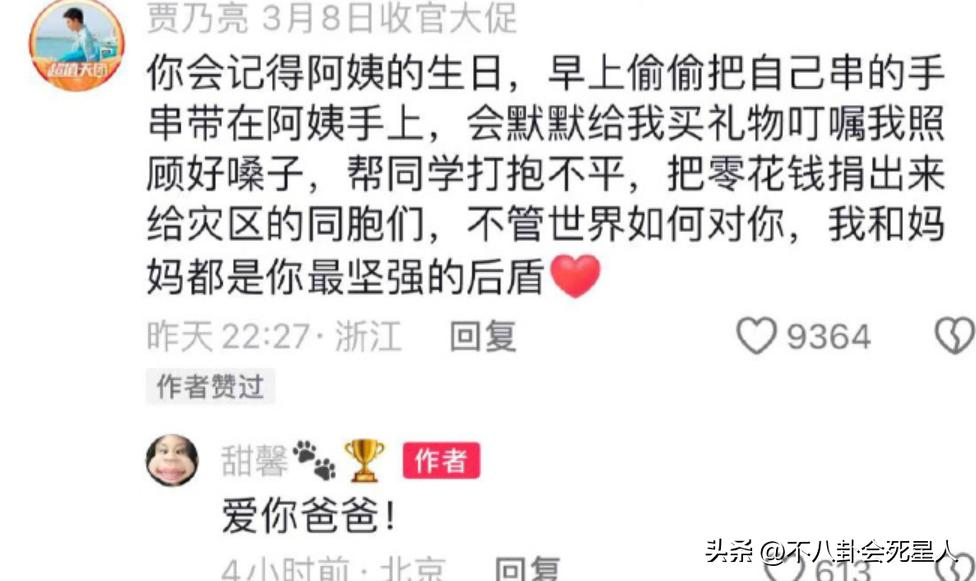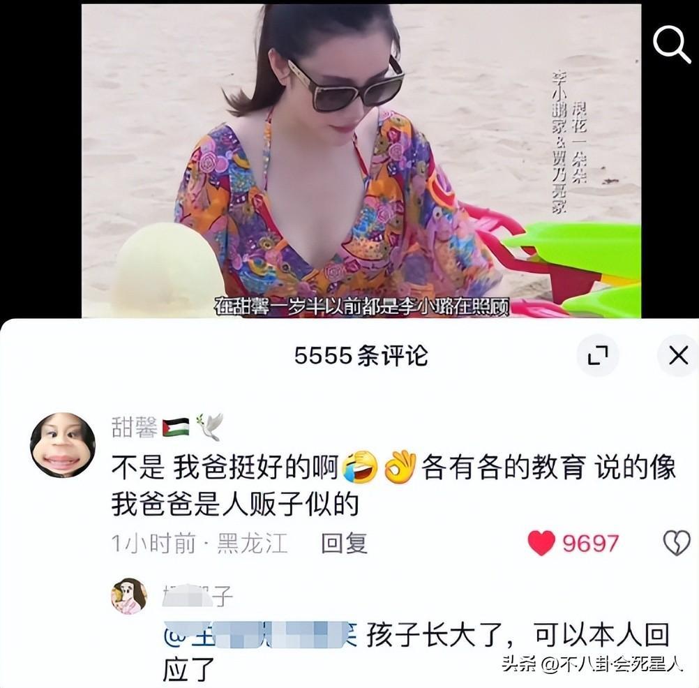 原因是有網友在相關視頻下說了關於賈乃亮不友好的評論,甜馨則回覆網友,我爸爸挺好的,各有各的教育,說的好像我爸是人販子一樣。