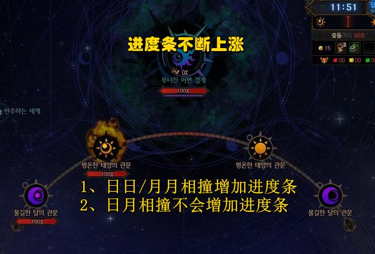 【3.解決機制】最大的問題就在於“日月機制”,2個太陽圖相撞、或者2個月亮圖相撞都會導致進度條增長;