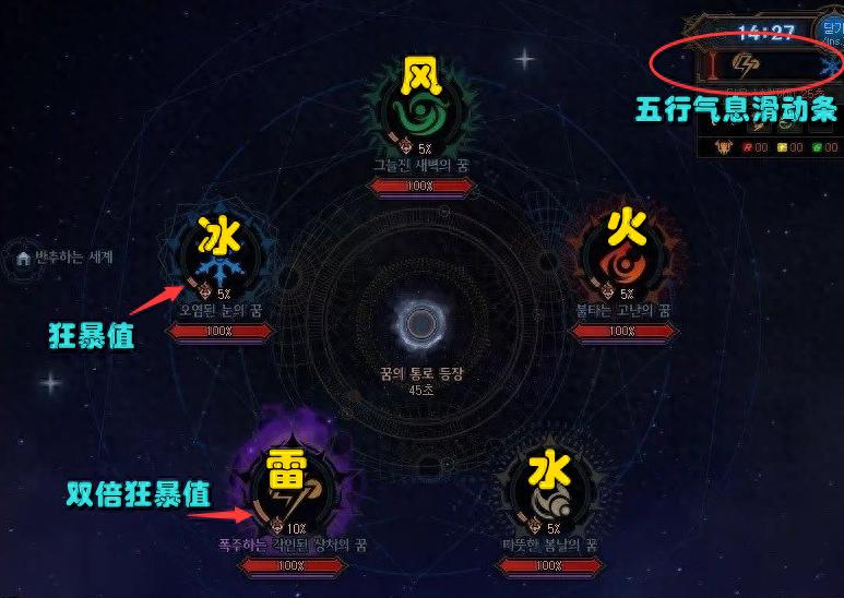 第二,攻堅戰右上角有一個不斷滑動的五行氣息,當對應氣息移動到紅線時,該領主會進入大機制狀態;