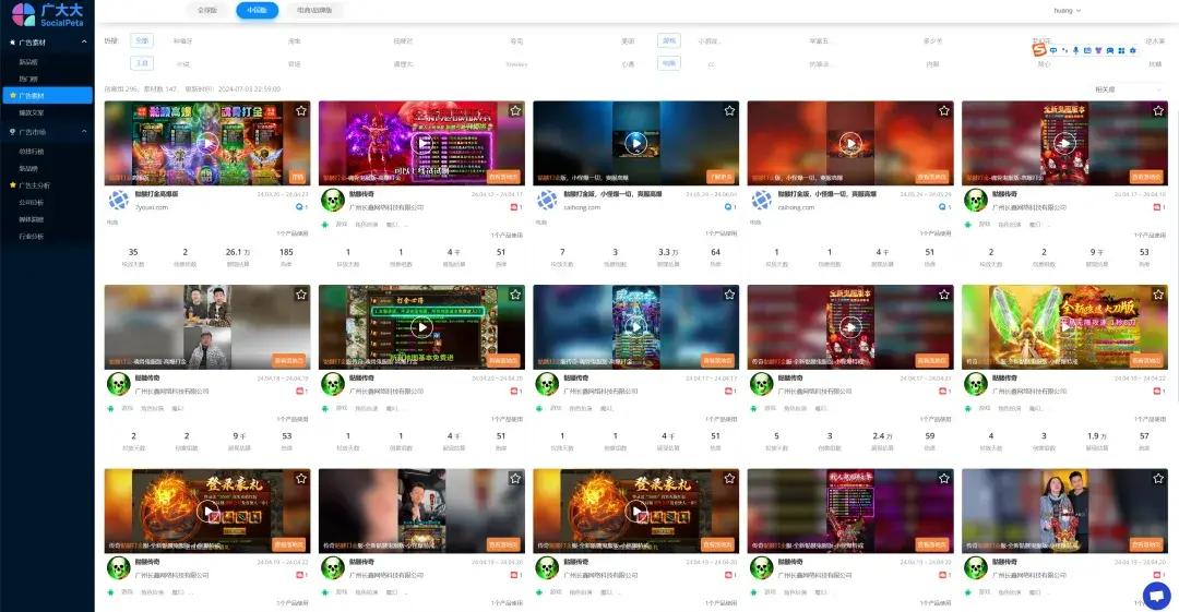 在第三方廣告數據監測平臺“廣大大”上,可以直觀看到這類素材的實際效果