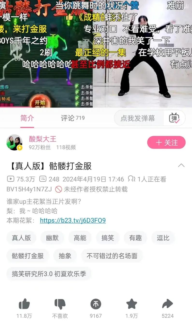 從淺層來說,當代年輕人給“骷髏打金”做二創,和當年的學生們模仿電視廣告裏的腦白金舞蹈自然是也沒什麼兩樣。