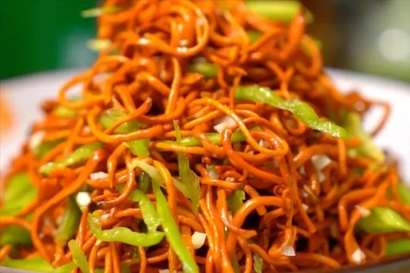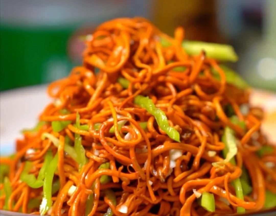 5、加圓椒絲蟲草花炒熟,最後放辣椒絲,少許鹽調味即可。