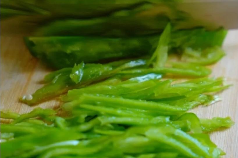 2、青椒1個,洗淨切絲,大蒜切碎末。