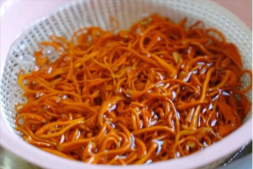 1、將蟲草花用水洗淨、用溫水浸透。