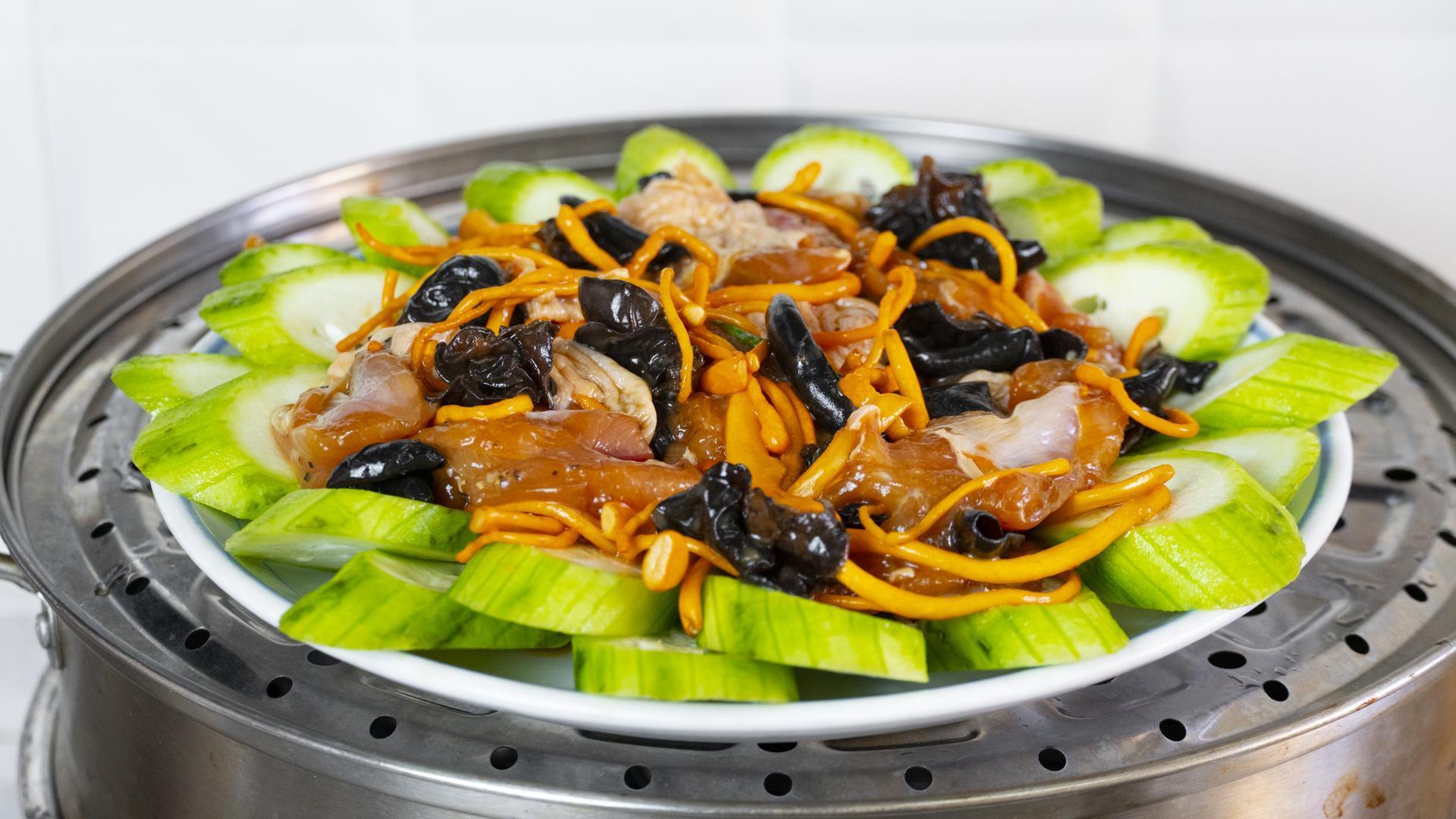 香噴噴的蟲草菇蒸雞就做好了,這樣做出來的雞肉清爽嫩滑,可口好喫。