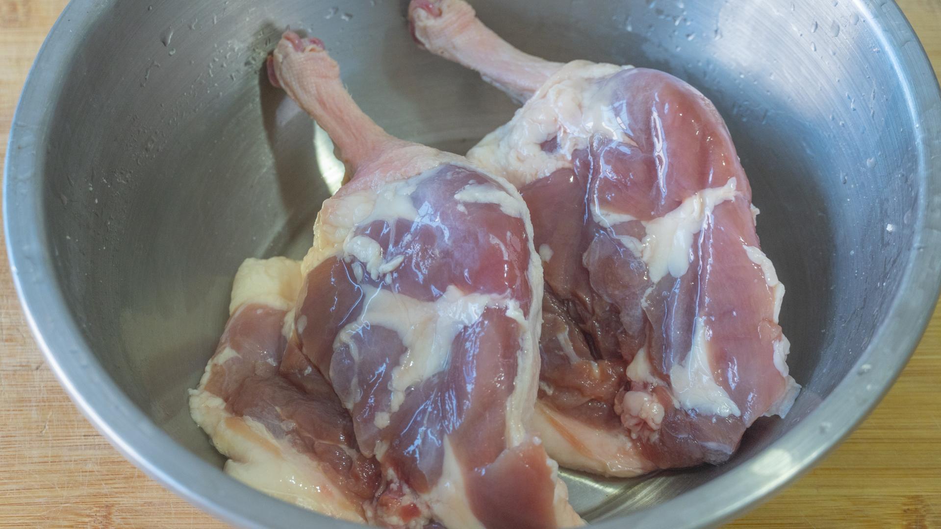 1、雞腿2個,先清洗乾淨,接着來去骨。