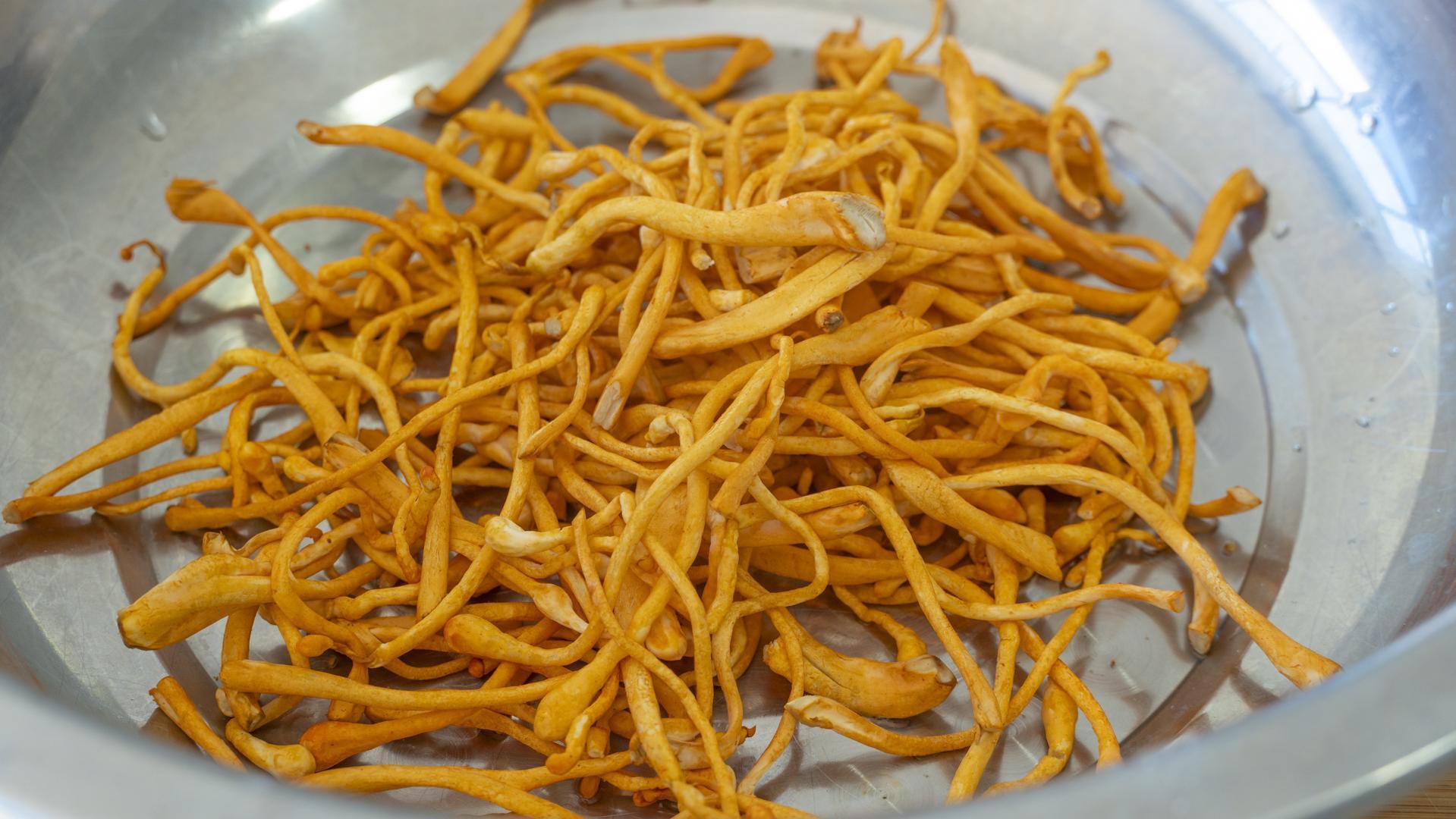 5、蟲草菇1小把,清洗乾淨後瀝乾水分。