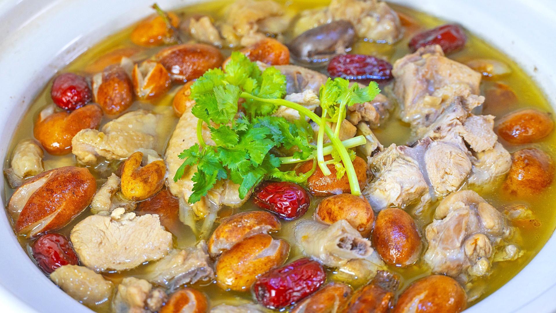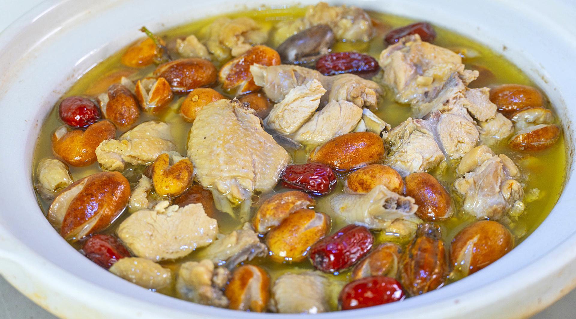 3、然後倒入黃皮果和紅棗,蓋上繼續小火燉20分鐘。