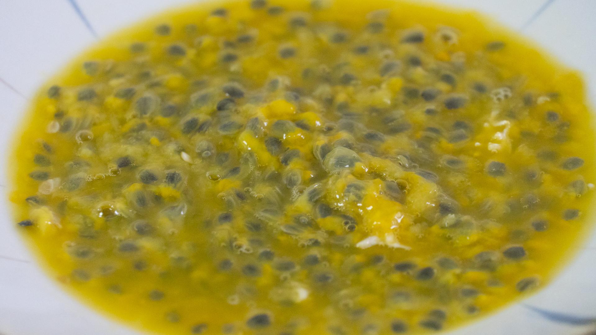 1、百香果5個,先清洗乾淨,果肉挖出來,裝入碗裏就行了。5個百香果 100克,倒入鍋裏後再加80克清水、 30克白糖,然後開中火煮。