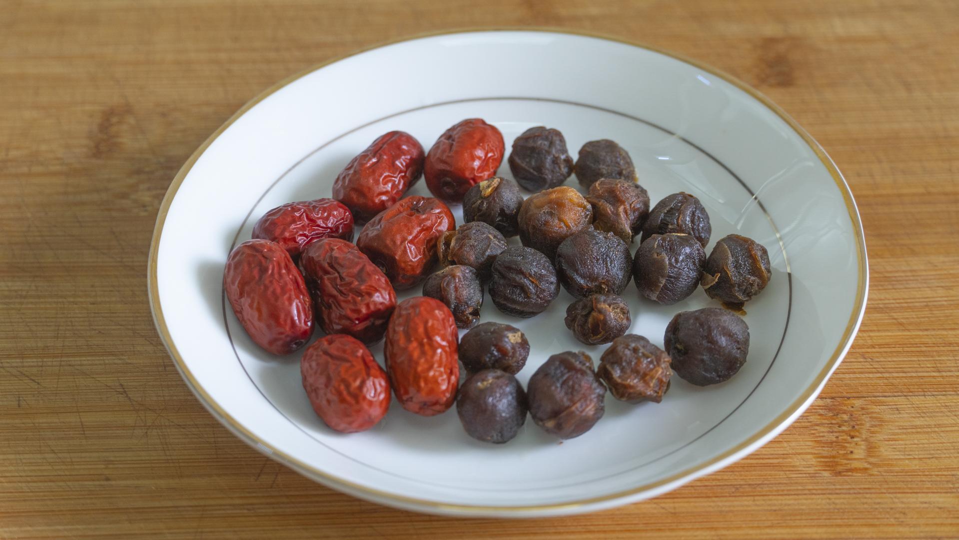 1、幹桂圓10顆,剝開後取出桂圓肉,然後加點溫水泡10分鐘。