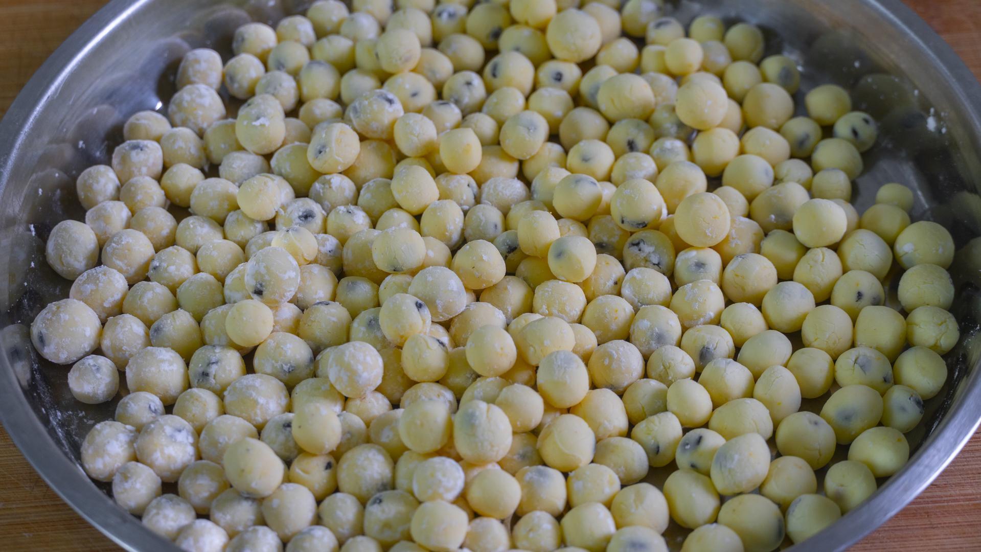 4、揉好的麪糰兒取出來移到砧板上,搓成小長條,切成小面劑子,再搓成一個個小圓球就可以了。