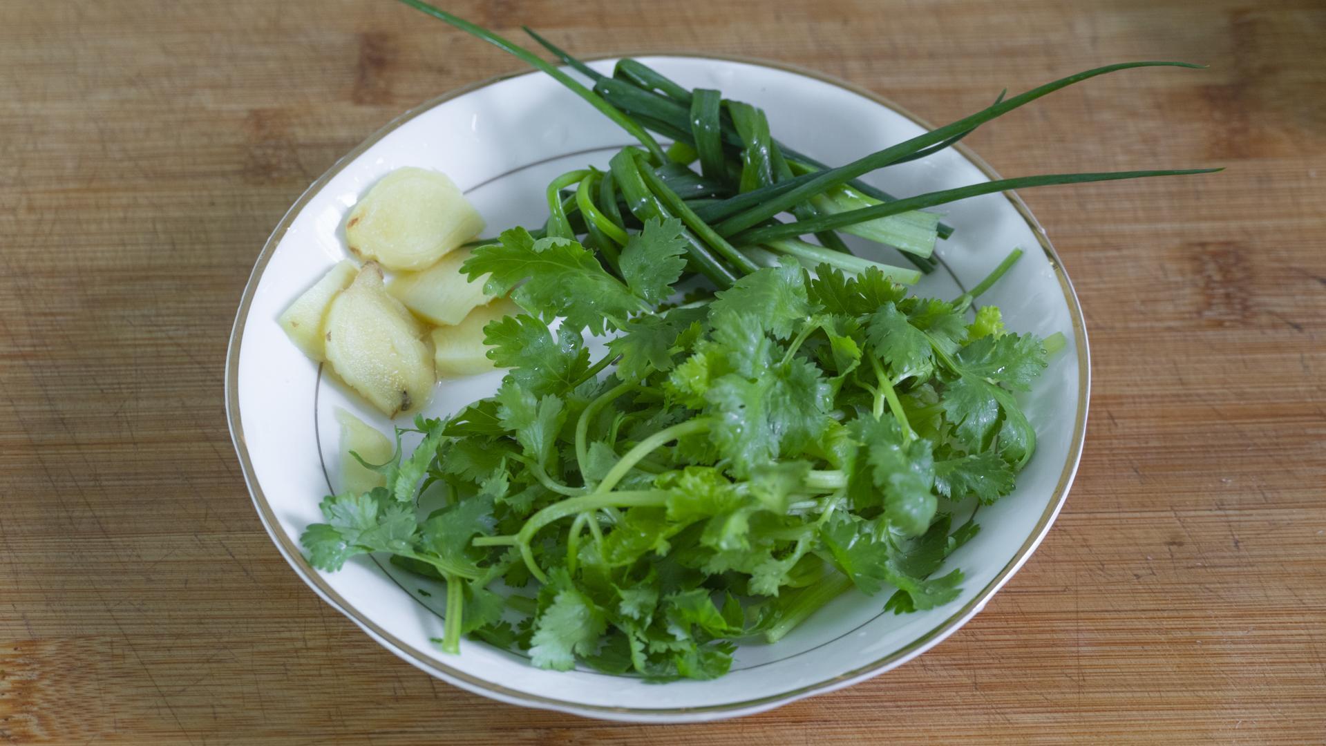 2、再加兩個蔥結和幾片生薑,大火煮開後轉小火燉40分鐘。