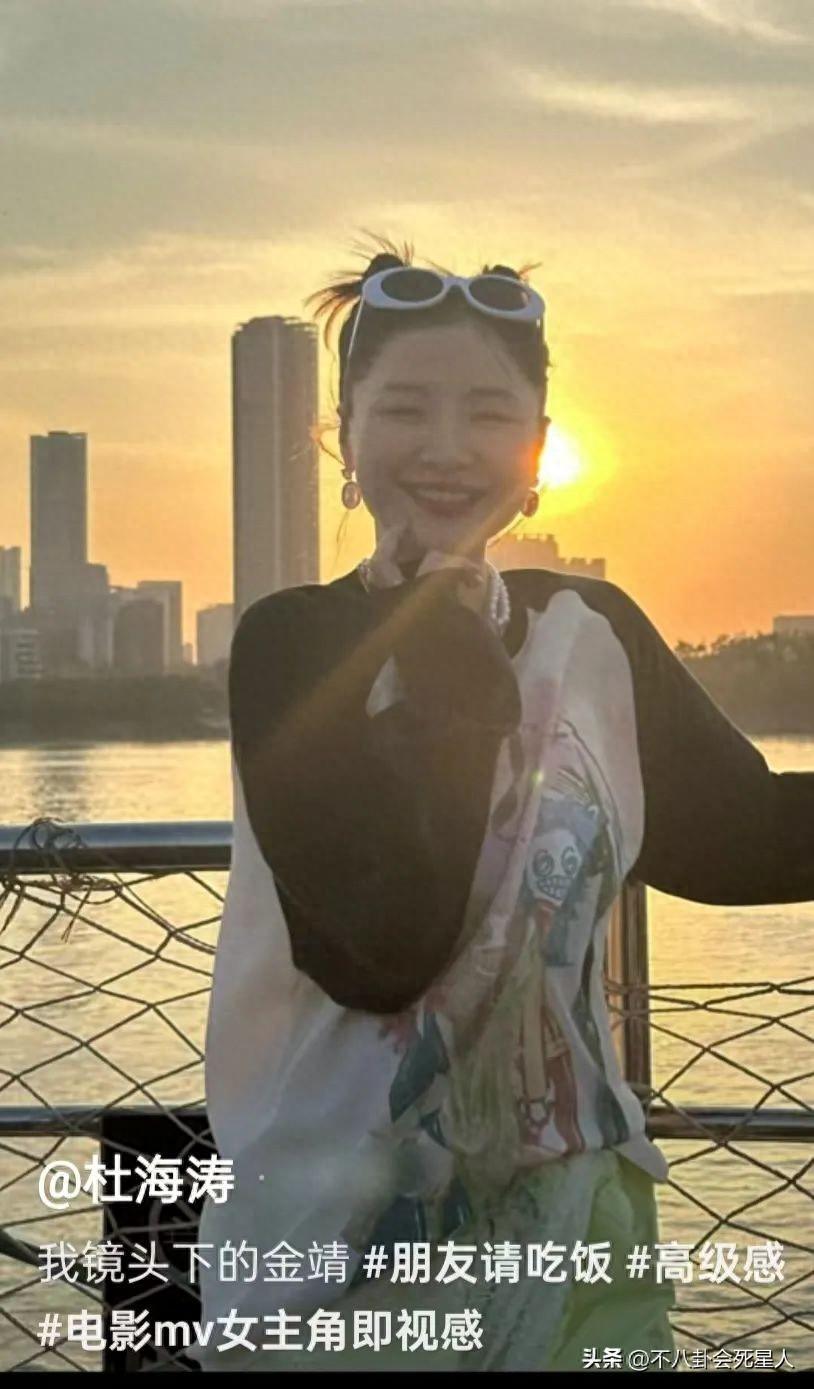 近日,杜海濤更新了一則視頻,視頻中他給金靖拍了一組照片,金靖站在江邊對鏡大笑,很有活力和氛圍感。