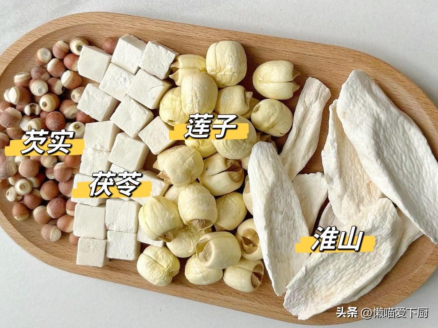 四神湯是我國古代傳承下來的非常出名的食方,“四神”指的是茯苓、淮山、蓮子、芡實(或薏仁)這四樣食材,它們搭配在一起煮湯有清熱利溼的作用,熱天喫正合適。