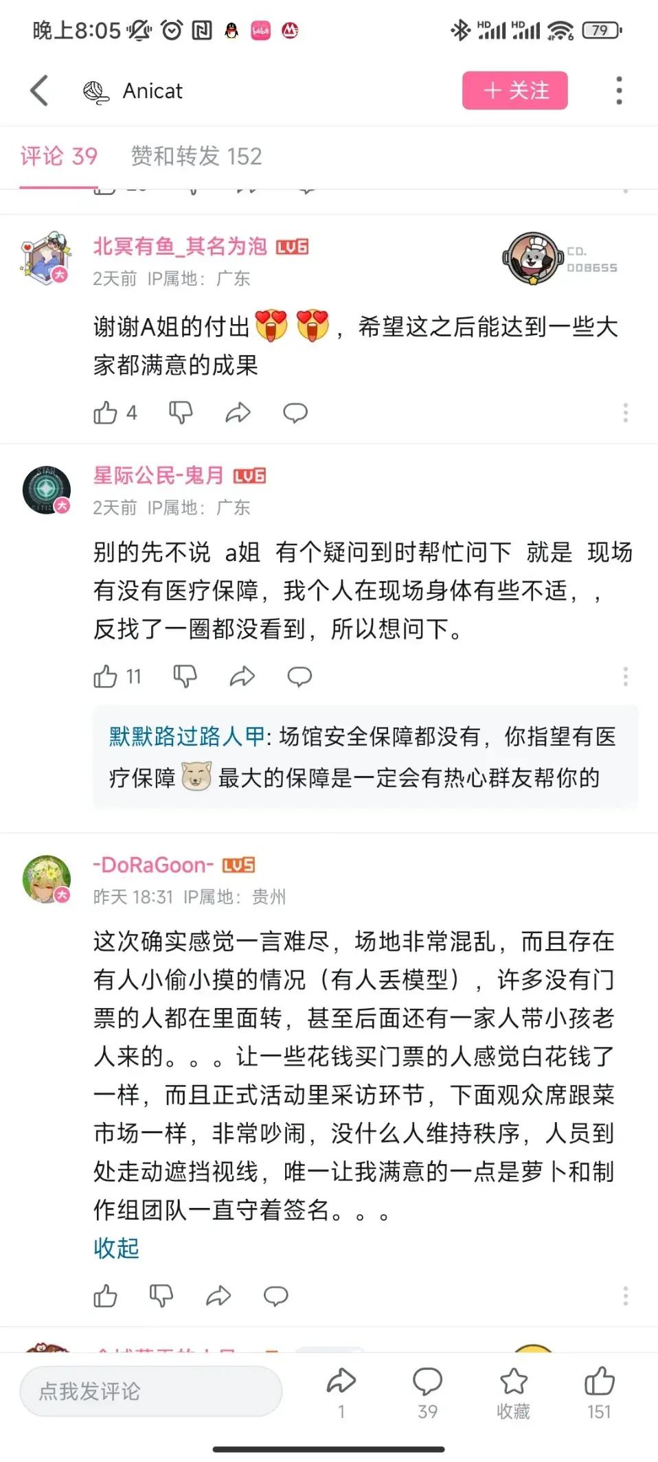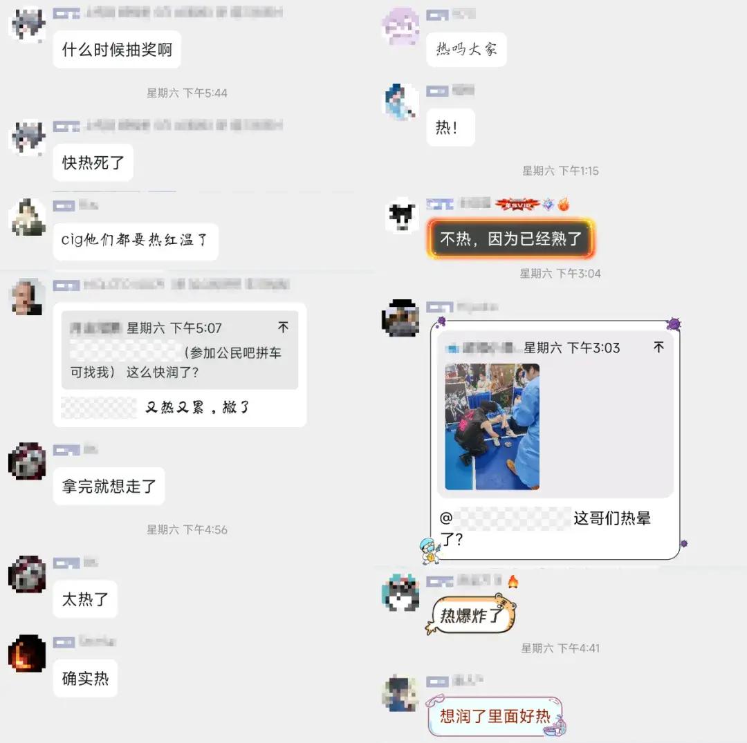 從下午1點一直持續到晚11點的活動中,不少愛好者實在是扛不住溼熱,選擇了半道離場,而當活動最後一次現場抽獎環節結束後,更多人也離開了現場。在愛好者們互相溝通的大小羣裏,對於溫度的抱怨也比比皆是,不少人甚至認爲,如果沒有下午的一場大雨降溫,那可能會有很多參與者最後因中暑倒下。