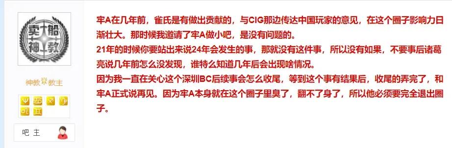在6月底,老A還是那個“中文社區第一人”,幾天後,已經變成了很多人眼中“在圈子裏臭了,必須完全退出圈子”的“牢A”。
