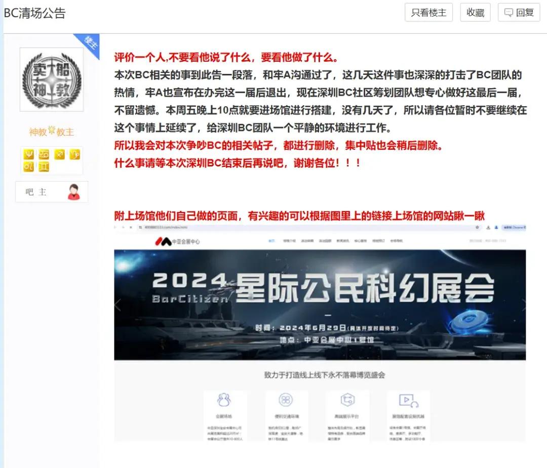 緊接着,老A便宣佈深圳BC會是他“牽頭的最後一屆BC”, 並就此“退圈”,很多人認爲老A這是因爲自己的全心付出受到質疑,情緒低落而心生退意,認爲這將是國內《星際公民》社羣的損失和遺憾。