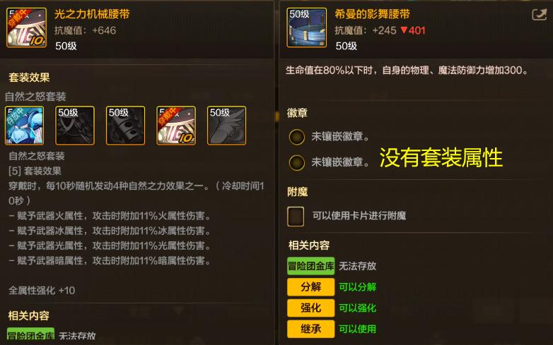 就單純的名字雷同而已,萌新第一次看到還以爲自己出現了錯覺,翻看了半天就是找不到套裝屬性,別找了,它的確沒有。