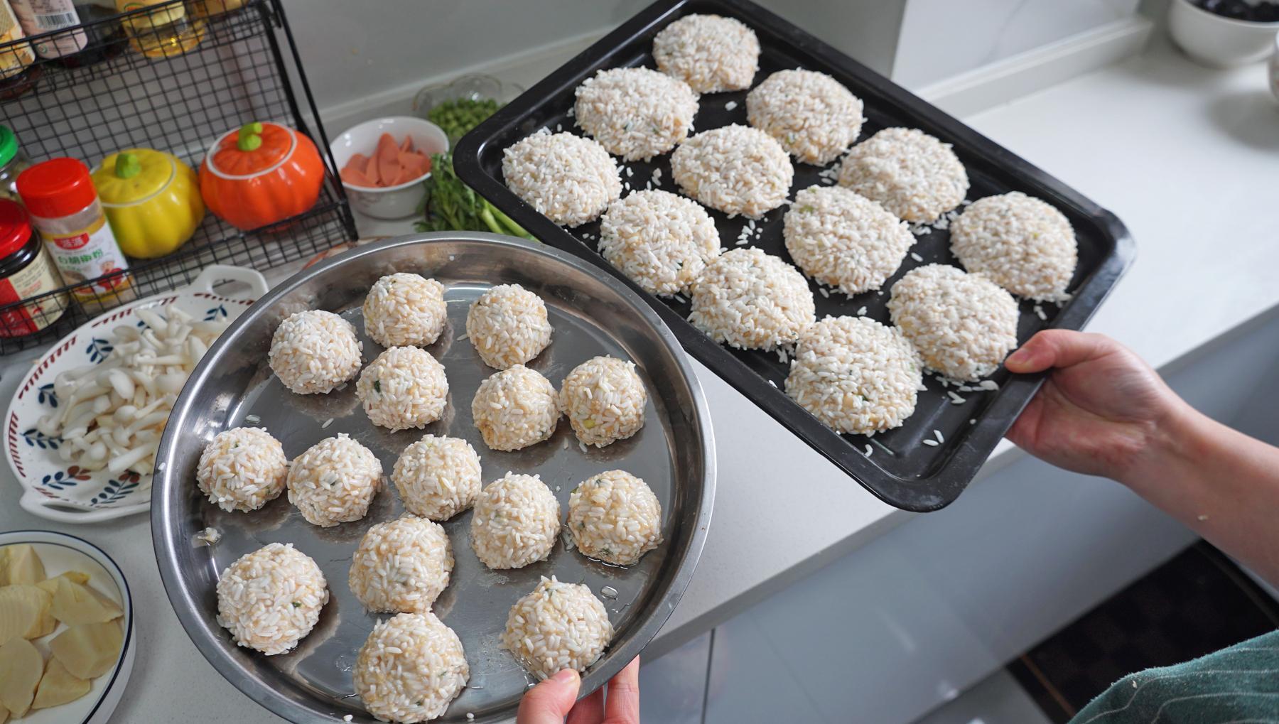 6、剩下來的我搓了一點丸子,然後同樣的方法裹上了糯米;
