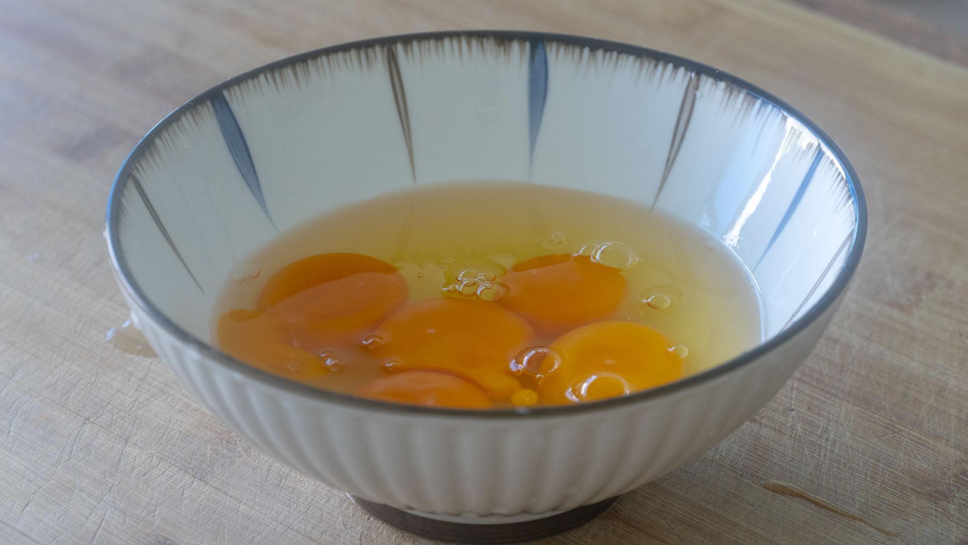 4、碗裏打入5個雞蛋,攪散就可以了。