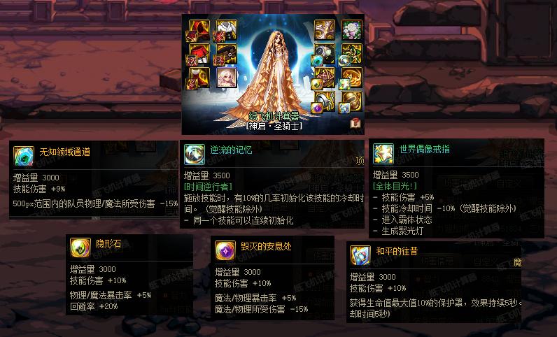 高增幅可以繼續選擇“恍惚3.0”,低增幅可以選擇“世界偶像戒指”減少冷卻、“遺忘魔石”“逆流的記憶”隨機初始化技能、“敏捷的動作”增加速度等。