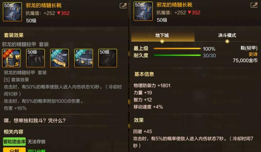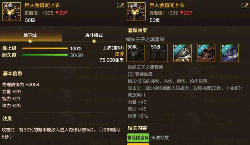 單件可以讓敵人進入內傷狀態,套裝也有50%概率讓敵人進入內傷狀態;