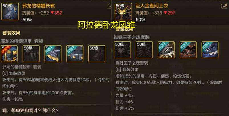 忽然發現“蜘蛛王子套”和“邪龍精髓套”竟然有異曲同工之妙,都是讓敵人進入異常/內傷狀態,蓄滿了一大堆的異常效果,然後給了別人一個小小的刮痧。