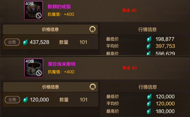 骨戒目前售價40萬泰拉起步,黑珍珠目前售價10泰拉起。