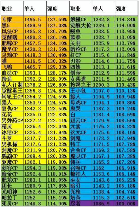 首先說一下,這是論壇大佬根據7.4版本全職業數據做出的打樁排名,分爲“單人強度”和“組隊強度”。