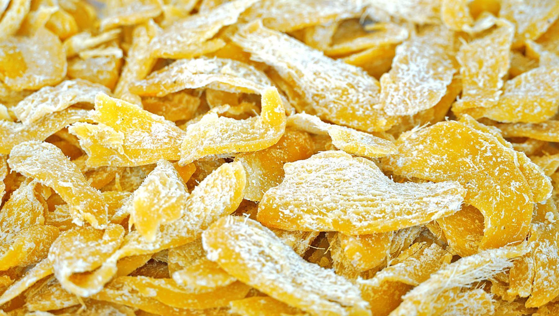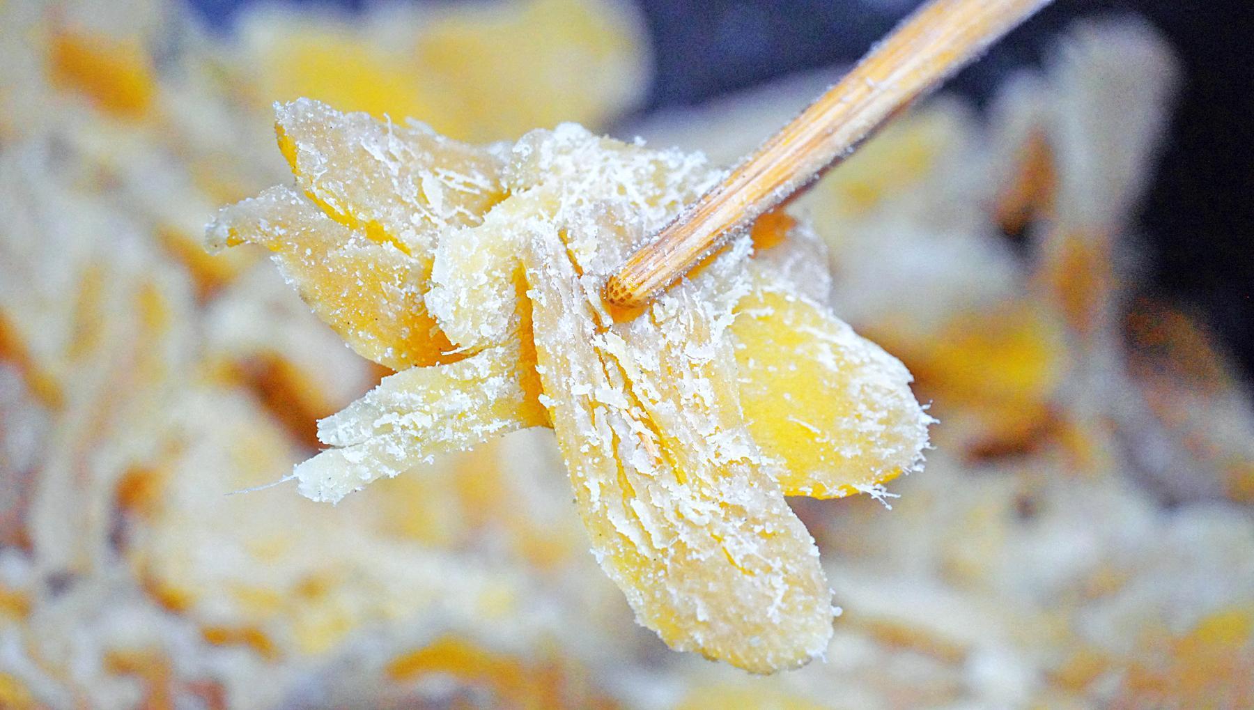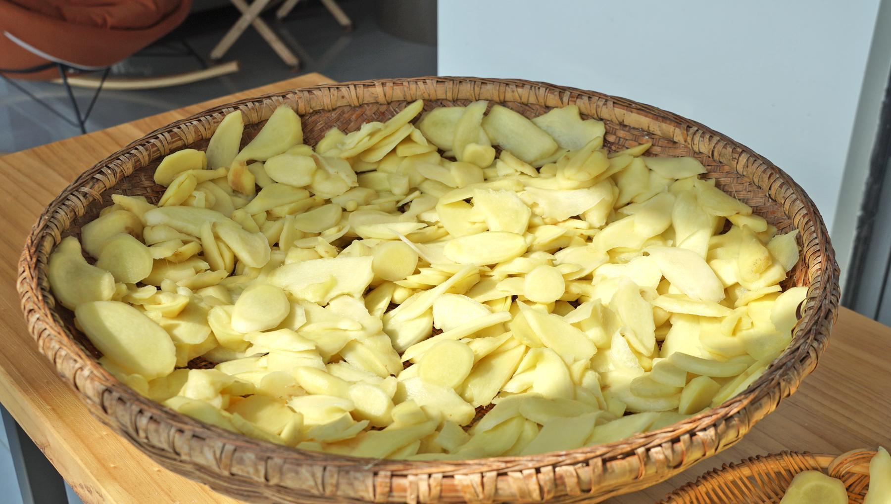 拿起來每一塊兒生薑都是乾燥的,但白色的又不是特別的多,這樣其實就是炒好了。