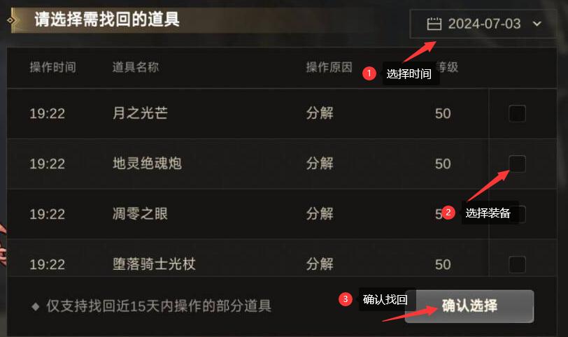 不過每個賬號30天內只能找回1次,每次只能找回1~5件裝備,可以順帶看看有沒有其他裝備需要找回的。