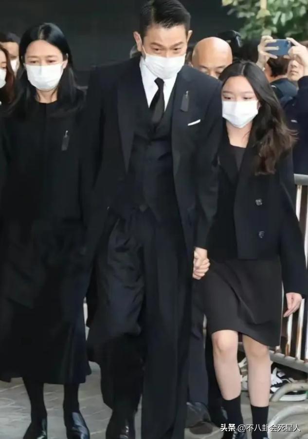 當時他們一家三口都是黑色套裝,劉德華緊緊地牽着女兒,劉向蕙跟在爸爸身邊。