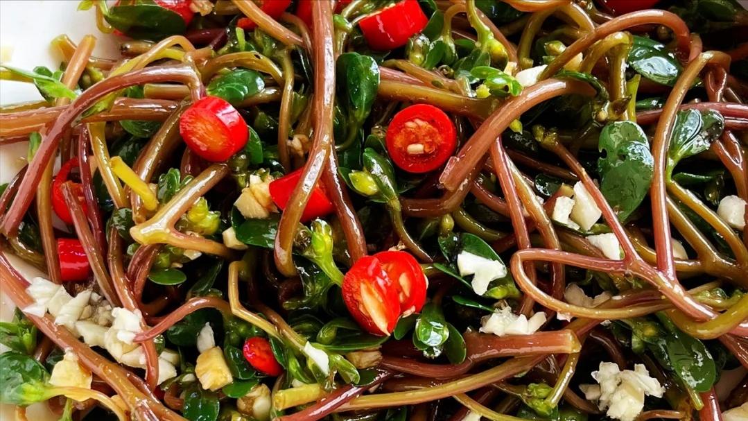 1、馬齒莧摘去根部留嫩芽部位,洗淨瀝乾水分。