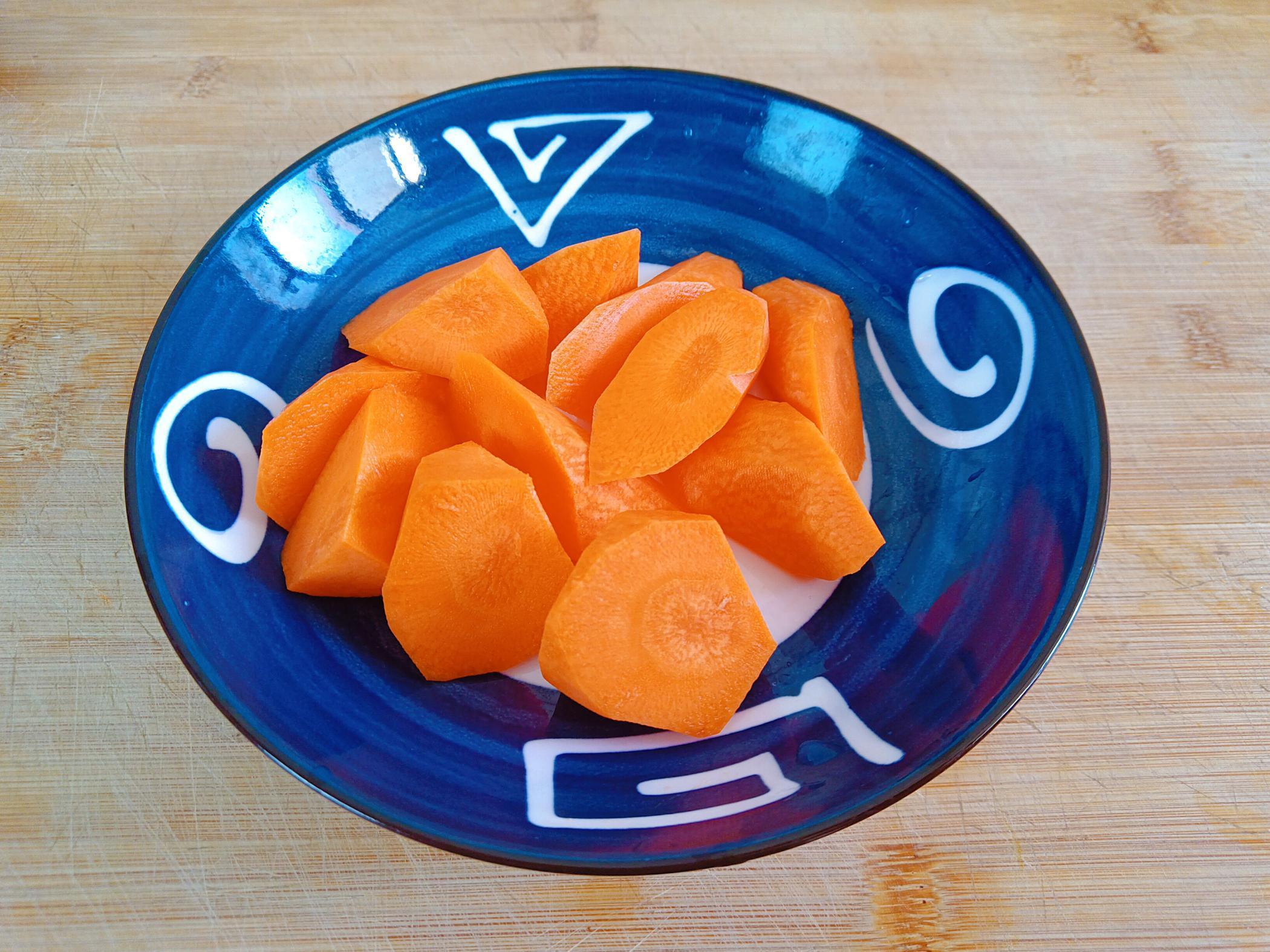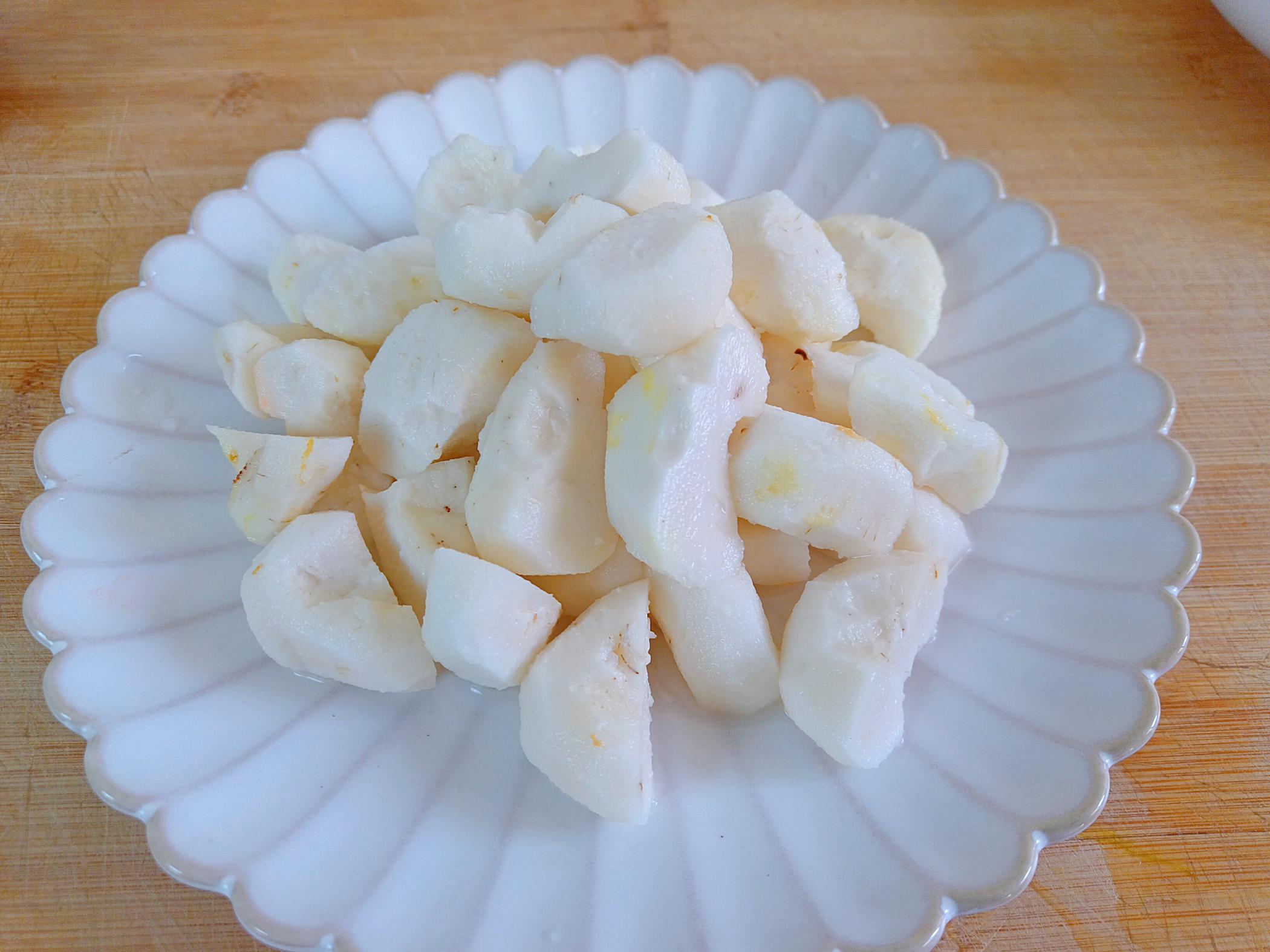 1、荸薺半斤,清淨削皮切開,一分爲二就行。